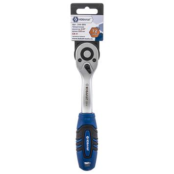 Трещоточная рукоятка КОБАЛЬТ 3/8" 195 мм, изогнутая рукоятка, 72 зуба флажковый переключатель