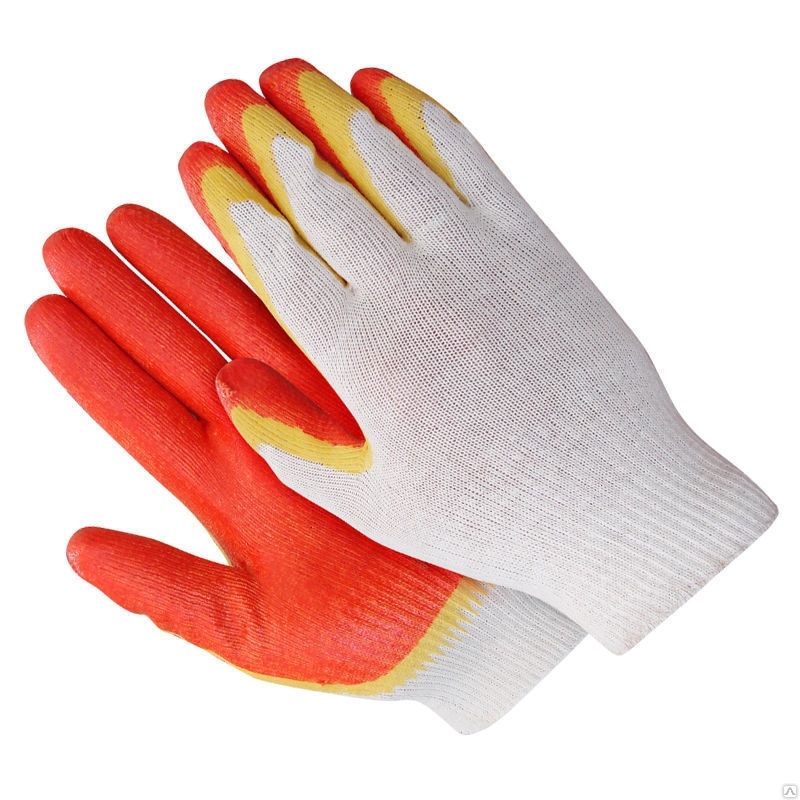 Перчатки трикотажные с двойным латексным покрытием ладони. Обладают высокой износостойкостью, не промокают при работе с влажными материалами. Перчатки надежно предохраняют руки от механических повреждений острыми углами, арматурой, стеклом. Ладонная часть и пальцы покрыты двойным слоем латекса, что обеспечивает повышенные сцепные свойства, что важно во многих сферах: строительство, литейное производство и художественная ковка, при выполнении лакокрасочных работ и пр. Рука дышит и защищена.Характеристики
