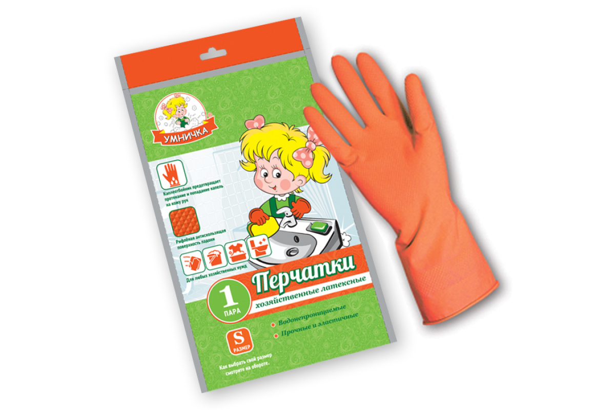 Перчатки латексные "Умничка". Благодаря высокому качеству натурального латекса, содержащемуся в составе - перчатки имеют высокую прочность и эластичность. Специальная текстурная поверхность для лучшего захвата – поможет легко удерживать предметы избегая соскальзывания. Безопасны при соприкосновении с пищевыми продуктами. Специальный каплеотбойник на манжете перчатки предотвращает протекание и попадания капель на кожу рук.Характеристики
