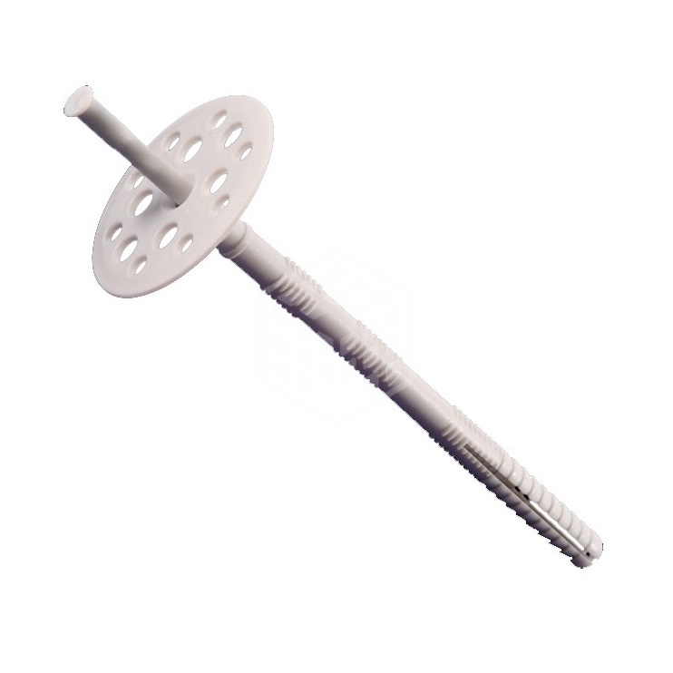 Дюбель для крепления теплоизоляции IZO, 10х80 мм используется в целях надёжной фиксации термоизоляционного материала (стекловаты, пенопласта, полиуретана) на стенах, подверженных неблагоприятным погодным явлениям (кирпиче, бетонной кладке, пенобетоне). Материал теплоизоляции прочно удерживается большой цилиндрической шляпкой дюбеля, не допуская прорыва в месте крепления.Характеристики