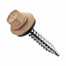 Саморез кровельный применяются для соединения кровельных материалов (металлочерепицы и профнастила) с металлическими или деревянными каркасами стен и крыш. Саморез представляет собой шуруп с шестигранной головкой, окрашенной в различные цвета порошковой краской, в комплекте с шайбой и резиновой прокладкой, способной выдержать воздействие внешних условий окружающей среды и обеспечивающую гидроизоляцию крепления. Изготавливаются саморезы из стали с цинковым покрытием.Характеристики