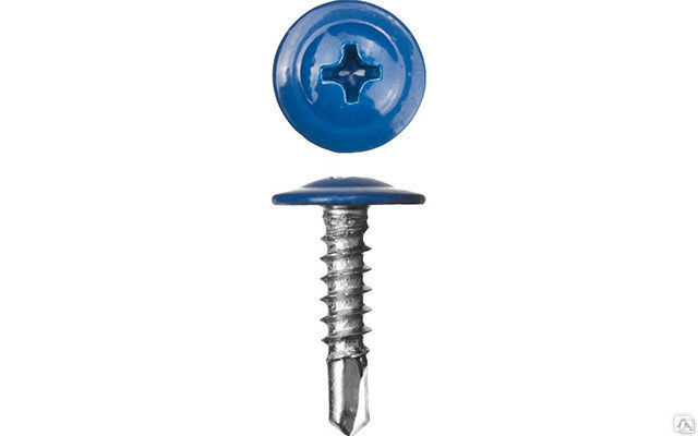 Саморез, предназначен для крепления различных металлических профилей и любого листового материала, в том числе фанеры, оргалита и пр. Саморез является надежным крепежным элементом, изготовленным из легированной стали, что повышает прочность конечного соединения. Изделие имеет специальное цинковое покрытие с белым пассивированием. По своей конструкции, саморез представляет собой полусферическую головку с прессшайбой (для более надежного крепления), крестообразный шлиц, частую резьбу и острый наконечник. Основным отличием самореза является окрашенная головка, за счет чего изделие удобно использовать для крепления строительных элементов со схожим цветом.Характеристики