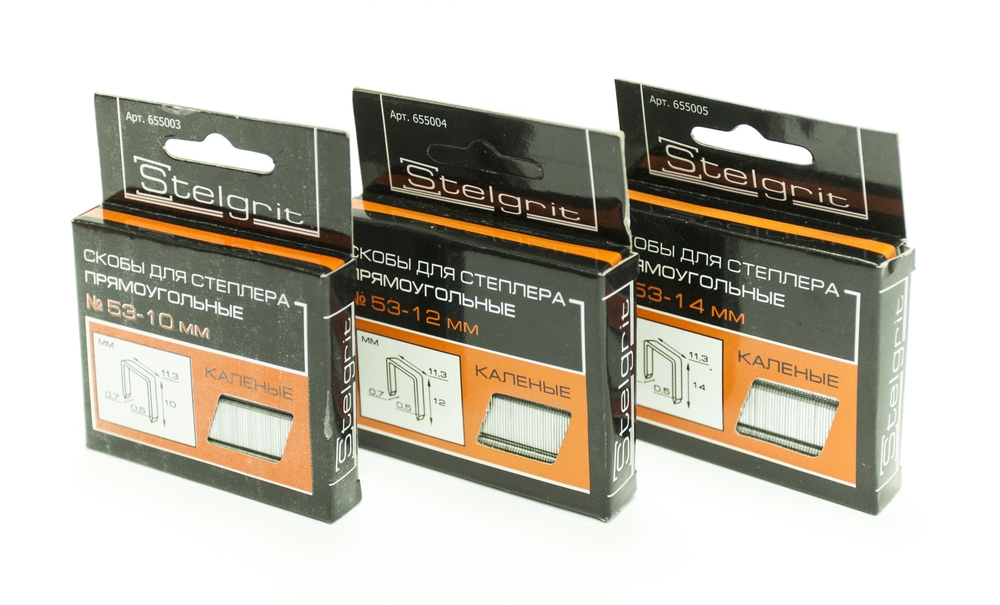 - Скобы для степлера каленые 10*0.7мм1000шт/уп*Stelgrit*