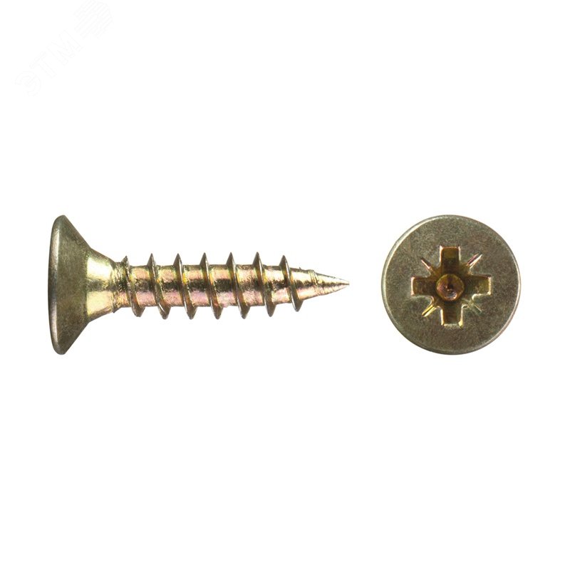 Саморез желтый цинк. Применяются для крепежа деревянных, гипсокартонных плит, тонкого листового материала. Могут быть использованы для монтажа в пустотелые и полнотелые основания при помощи дюбелей или сквозного крепления конструкций к деревянным основаниям. Универсальный саморез представляет собой шуруп с острым наконечником и потайной головкой с крестообразным шлицем. Материал, из которого изготовлен саморез, - покрытая цинком сталь. Производятся желтой или белой расцветки.Характеристики