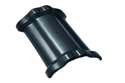 - Центральная коньковая черепица с муфтами, Рубин 9V, Глазурь королевский серый