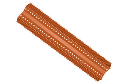 Полоса с вентиляционными отверстиями. Изготавливается из поливинилхлорида. Область применения Устройство вентиляции подкровельного пространства на коньке и хребте (для моделей минеральной и керамической черепицы с плоским профилем).Характеристики