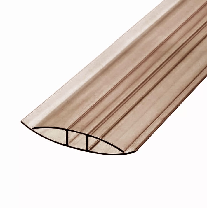 Профиль для продольного соединения поликарбоната обеспечивает плотное сопряжение листов без их повреждения саморезами – крепеж осуществляют через профиль. Также он обеспечивает компенсацию температурного расширения листов — при нагреве на ярком солнце поликарбонат не деформируется. Профиль гибкий и легко гнется в арочную конструкцию.Стандартная длина профиля – 6 м, при необходимости его можно подрезатьХарактеристики