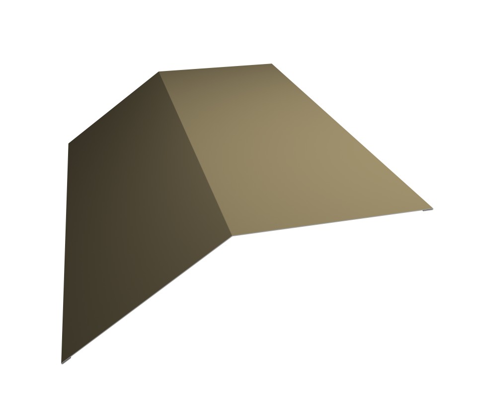 Планка конька плоского предназначена для защиты от попадания влаги, грязи в подкровельное пространство и от срыва листов порывами ветра, закрывая листы металлочерепицы или профнастила на коньке и наружных переломах кровли.Характеристики