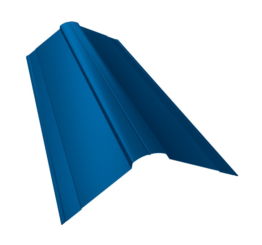 Планка конька фигурного предназначена для защиты от попадания влаги, грязи в подкровельное пространство и от срыва листов порывами ветра, закрывая листы металлочерепицы или профнастила на коньке и наружных переломах кровли.Характеристики
