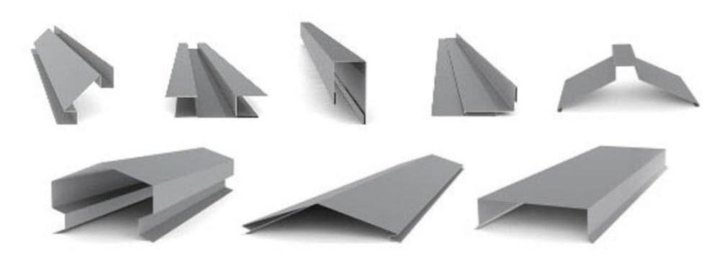 Фасонные изделия и доборные элементы – это широкий спектр профилированных материалов различной формы и размеров, предназначенных для устранения монтажных зазоров и щелей при покрытии кровли рулонными материалами, металлочерепицей или профнастилом, отделке фасадов сайдингом, создании ограждений и некоторых других случаев в строительстве.Характеристики