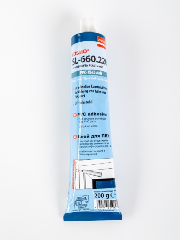 Однокомпонентный диффузионный клей Cosmofen Plus Wiess для быстрого конструкционного склеивания деталей из жёсткого ПВХ (оконное производство, сантехнические работы).Характеристики