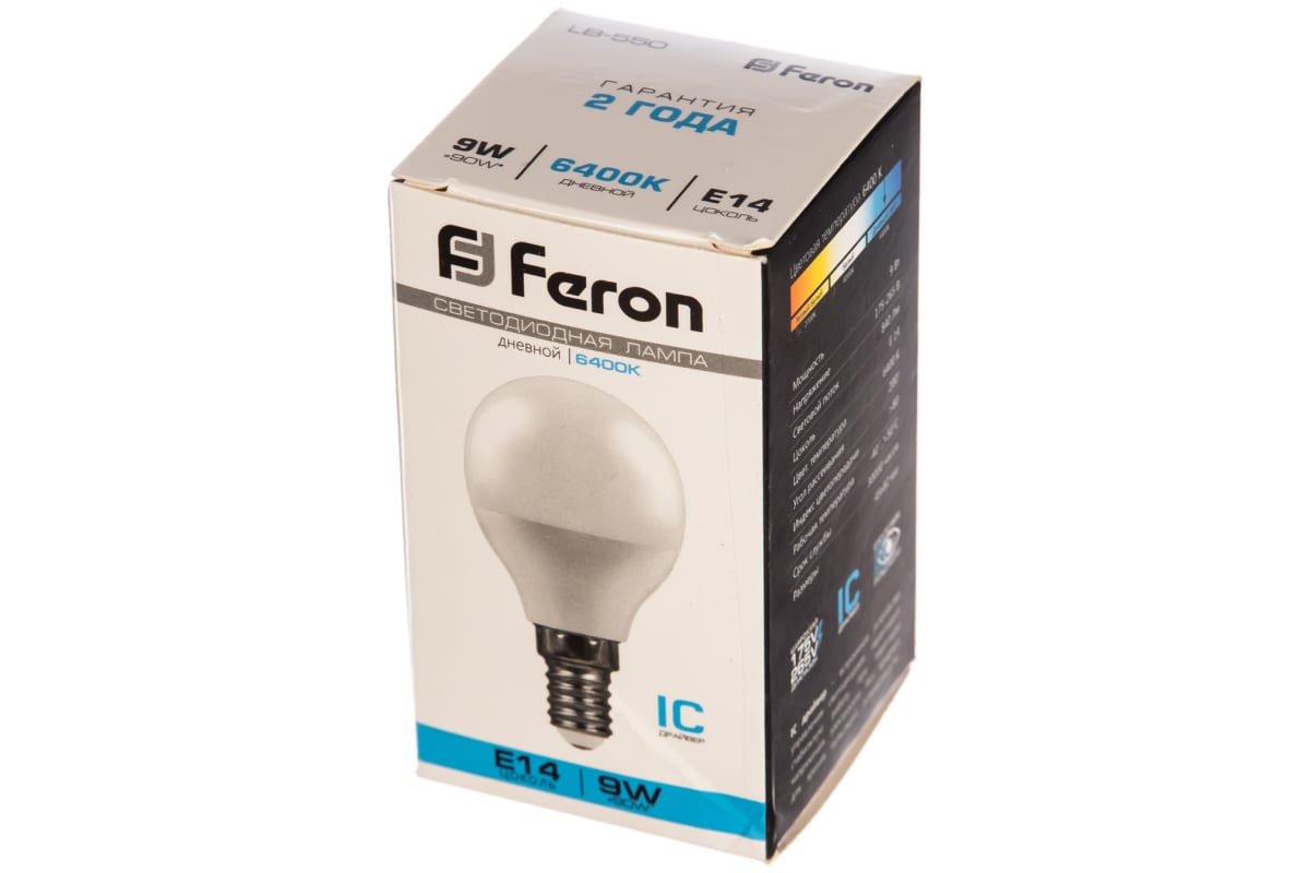 Лампа светодиодная FERON LB-550 (9W) 230V Е14 6400K G45 шарик дневной