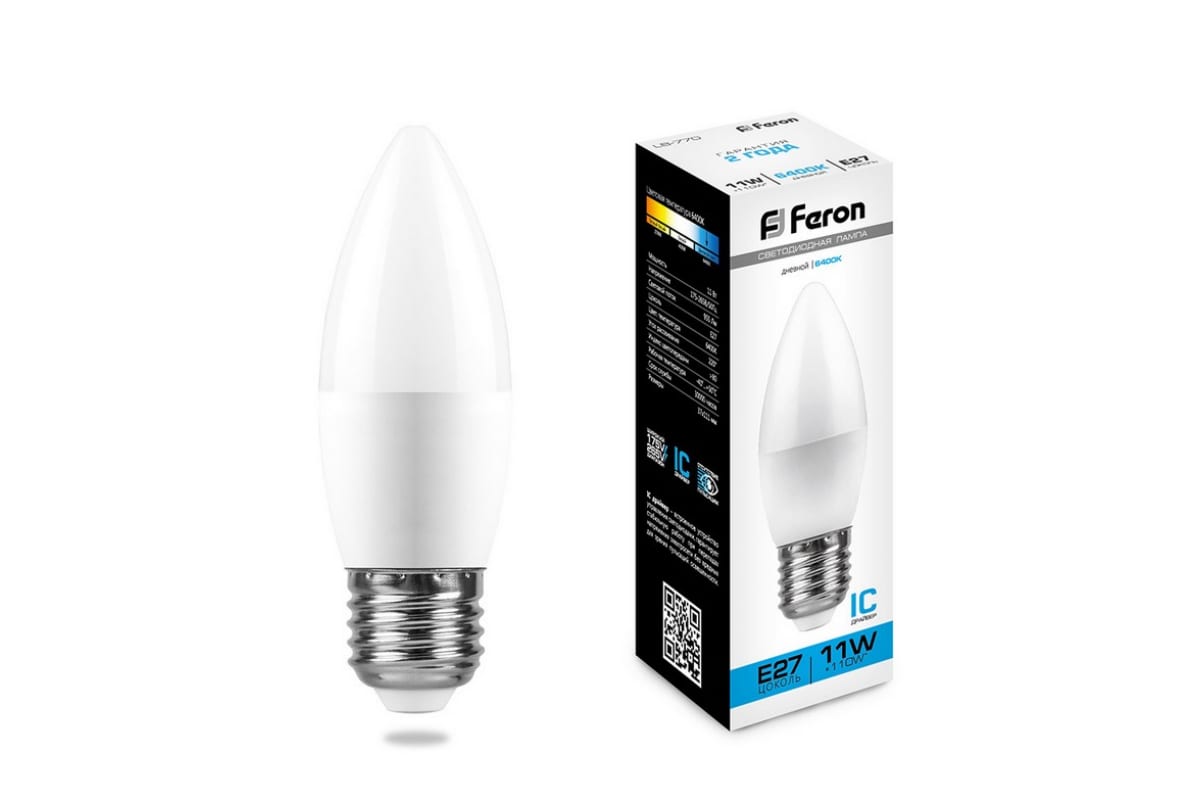 Лампа светодиодная FERON LB-770 (11W) 230V Е27 6400K С35 свеча дневной