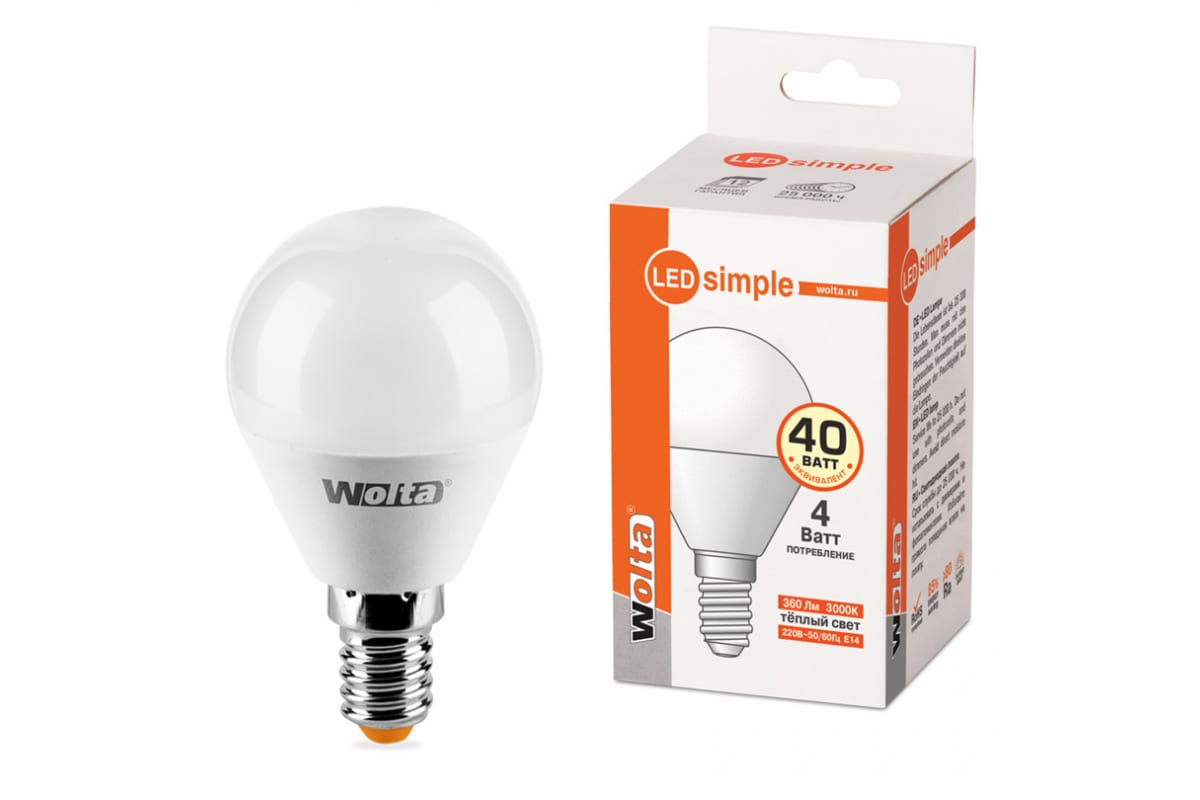 Лампа светодиодная LED WOLTA 25 S45 GL4 E14-S