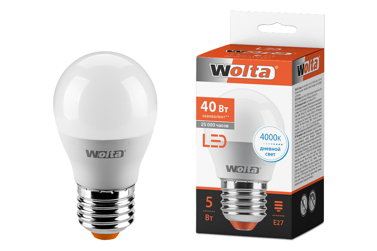 Лампа светодиодная LED WOLTA 25 S45 GL5.5 E27