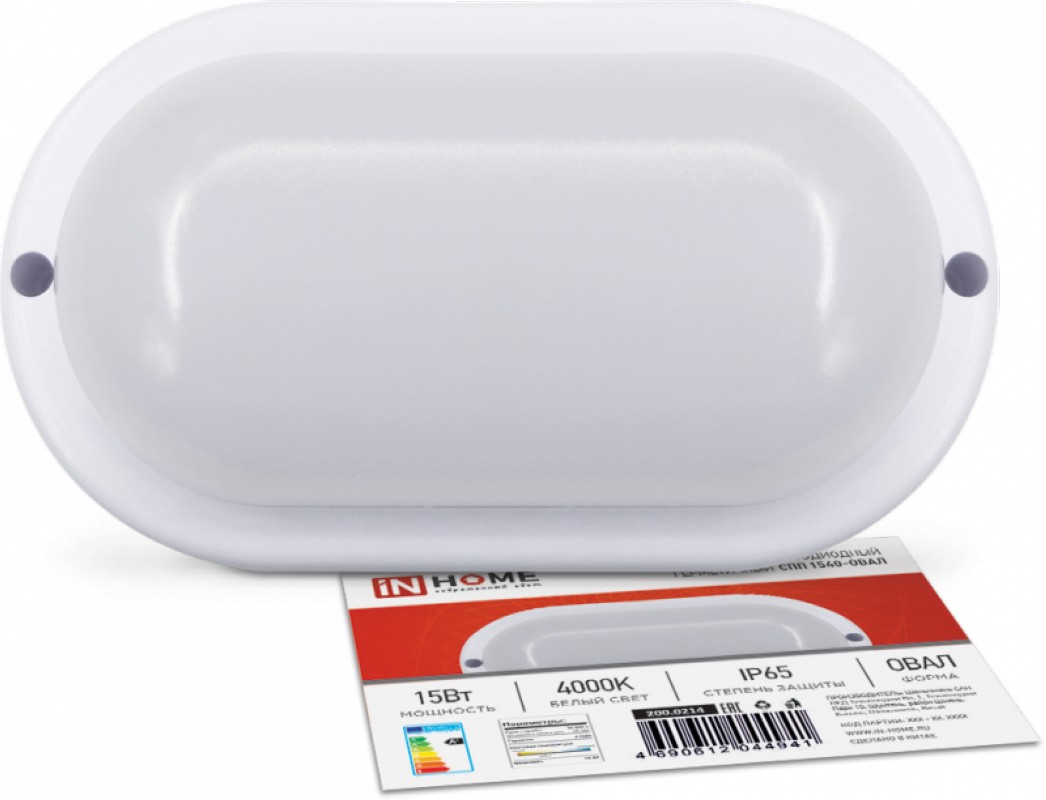 Светильник светодиодный герметичный СПП 1540-ОВАЛ 15Вт 4000К 135Лм IP65 160х88мм IN HOME - это компактный и эффективный источник света, который обеспечивает яркое и равномерное освещение внутри и снаружи помещений. Он оснащен светодиодами высокой яркости, которые обеспечивают высокую эффективность и долгий срок службы.Характеристики