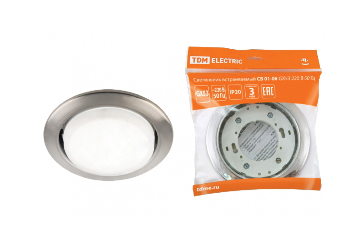 - Светильник встраиваемый СВ 01-06 GX 53 220 В 50 Гц сатин никель TDM