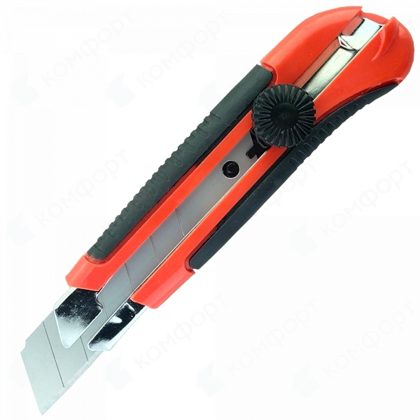 - Нож DERZHI с выдвижным сегмент.лезвием, пласт.корп.,метал.направ.25мм 8518-6118