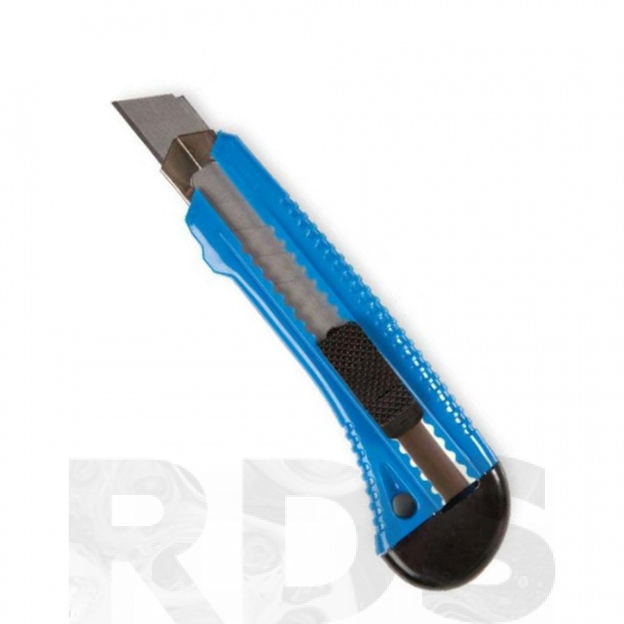 Нож с металлической направляющей и ручной фиксацией лезвия используется для разрезания бумаги и картона.Характеристики