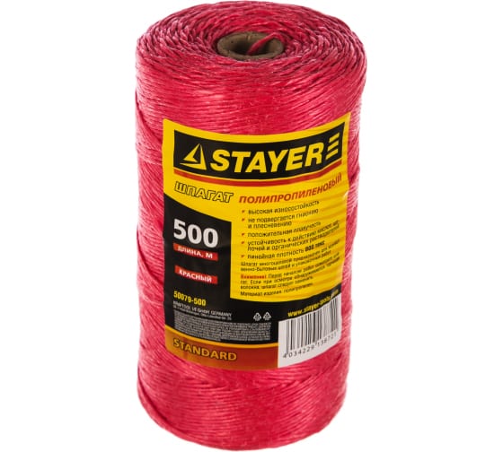- Шпагат STAYER полипропилен,d-1.5мм,красный, 500м