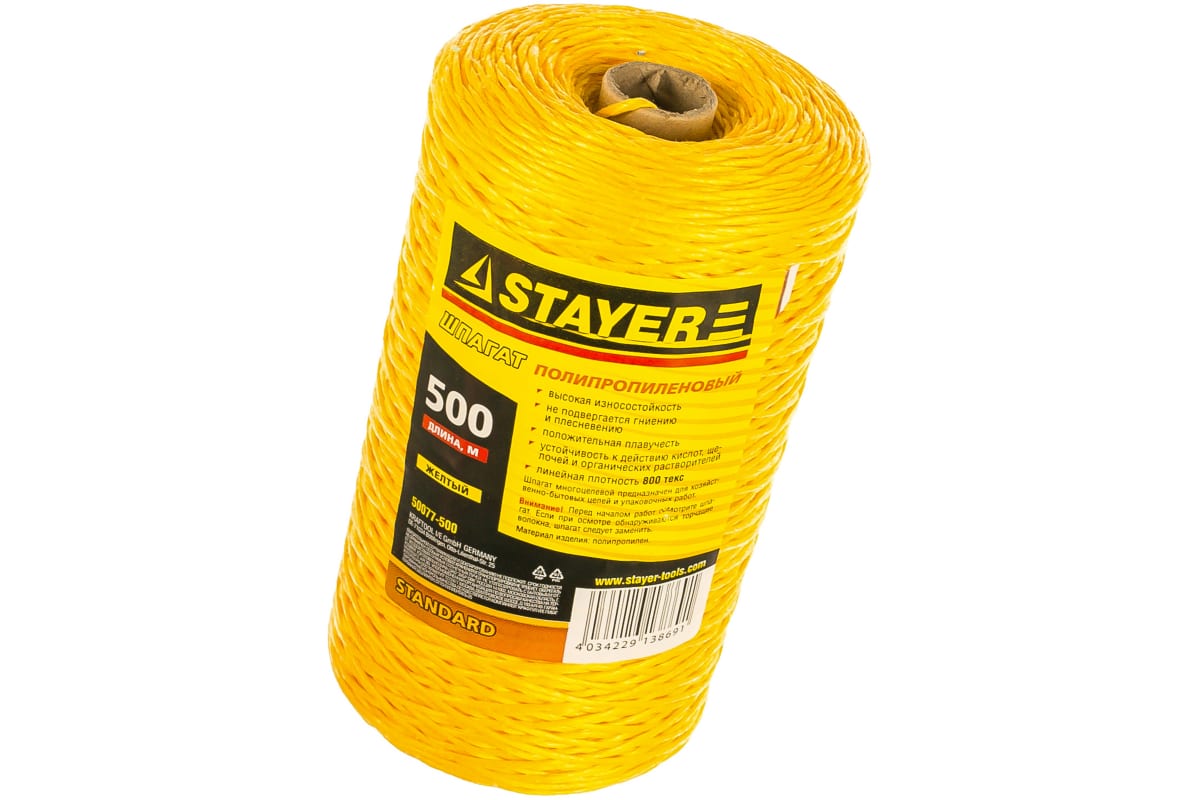 - Шпагат STAYER полипропилен,d-1.5мм,желтый, 500м