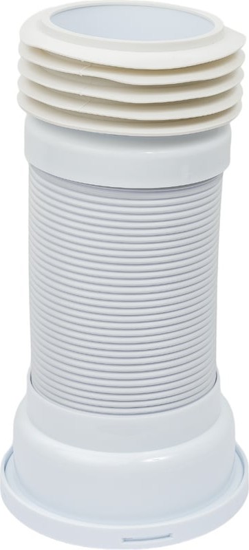 Гибкий армированный удлинитель используется для присоединения унитаза к канализации, диаметр подключения составляет 110 мм. Использование при установке унитаза гибкого гофрированного отвода позволяет смещать унитаз относительно канализационного входа, разворачивать его, а также подключать выпуск к фановой трубе, расположенной под произвольным углом к оси выпуска.Характеристики