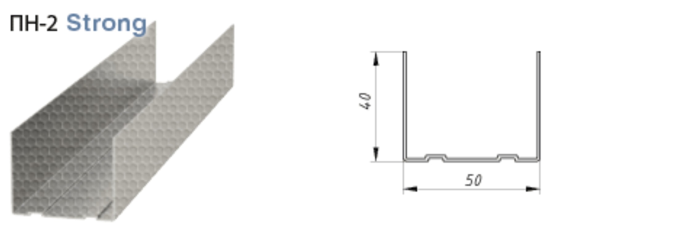 Профиль направляющий ПН-2 ― деталь металлического каркаса для конструкций из гипсокартона. Используется в качестве основы-опоры для фиксации перемычек и стоек при создании перегородок и облицовок. Отличается простой П-образной формой. Устанавливается по периметру каркаса, куда затем монтируются другие элементы системы. Профиль изготавливается путем холодного проката металлических лент толщиной 0,45 мм через специальный профилегибочный станок. Материалом служит оцинкованная сталь с необработанным покрытием. Этот металл отличается: прочностью и устойчивостью к деформации; увеличенным пределом износа; невосприимчивостью к коррозийным процессам и влиянию ржавчины; стойкостью к температурным перепадам и агрессивной окружающей среде. Размеры Ширина — 50 мм. Высота — 40 мм. Длина — 3 метра. Толщина стали — 0,45 мм. Страна производства — Россия.Характеристики