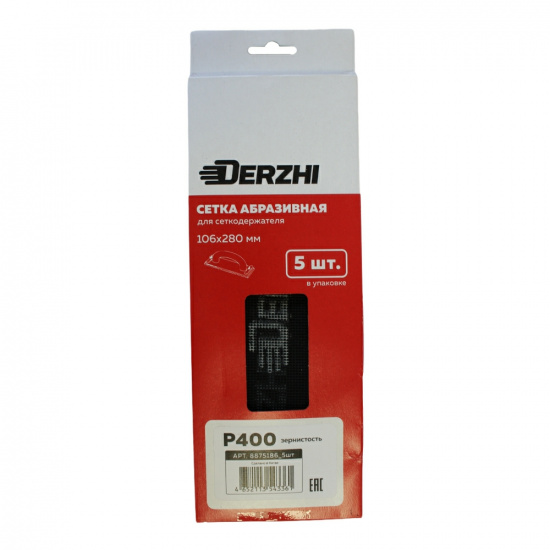 Сетка абразивная Derzhi, Р400, для сеткодержателя. Применяется для ручного шлифования металлических поверхностей, гипсокартона и для выравнивания сухой штукатурки. В качестве основы используется сетка из гибкого стекловолокна. Сетчатая структура позволяет избегать забивания ячеек продуктами обработки. Используется совместно со шлифовальным брусом или сеткодержателем.Характеристики