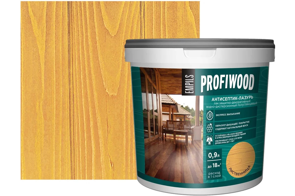 - Антисептик-лазурь декоративный в/д полиакр. лиственница 0,9кг
