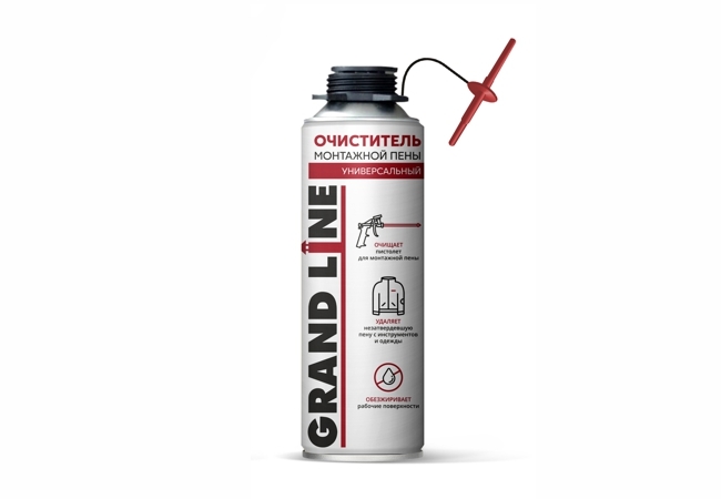 Очиститель монтажной пены Grand Line предназначен для очищения клапанов пистолетов – аппликаторов, удаления свежих пятен герметика, обезжиривания стальных поверхностей перед использованием силиконов и полиуретана.Характеристики