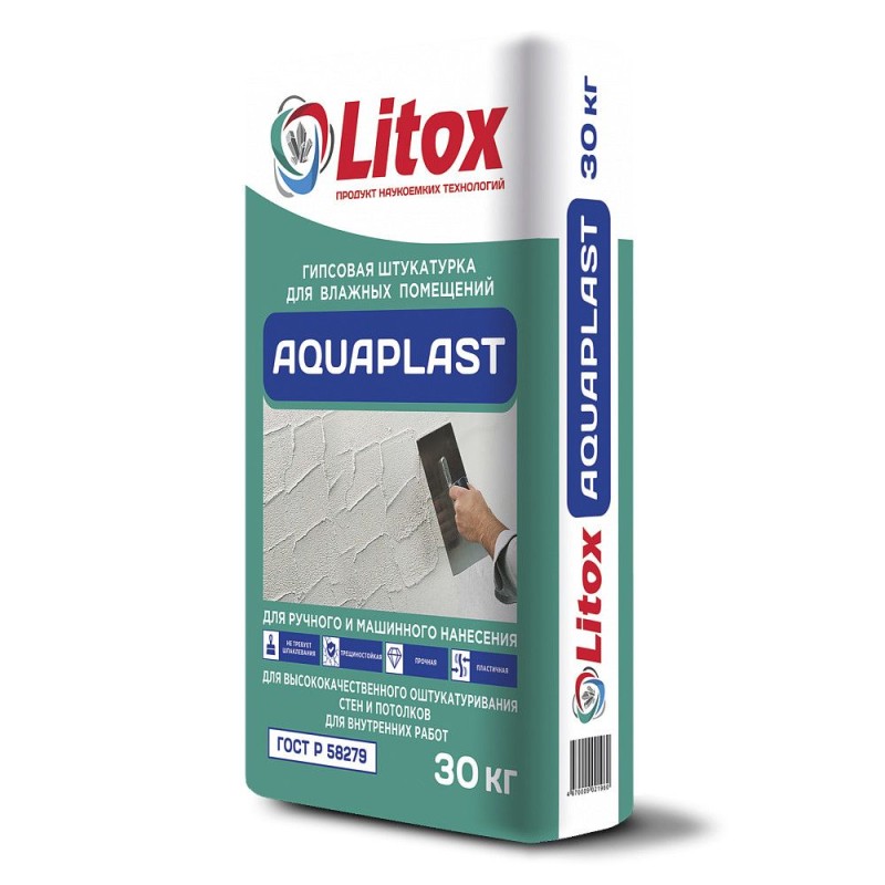 - Литокс штукатурка гипсовая для влажных помещений AQUAPLAST 30кг