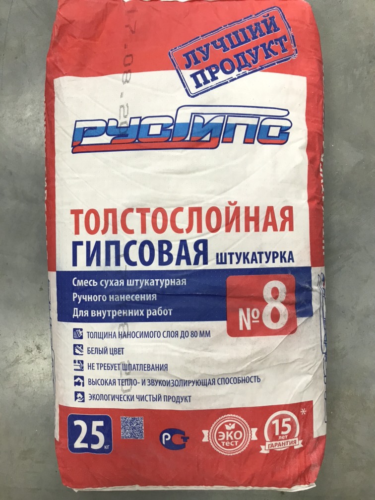 - Штукатурка гипсовая РусГипс №8 25 кг