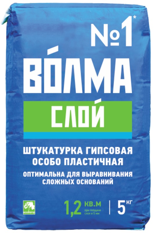 ВОЛМА-Слой - сухая штукатурная смесь на основе натурального гипса, легкого заполнителя, минеральных наполнителей и модифицирующих добавок, обеспечивающих высокую адгезию, водоудерживающую способность и оптимальное время работы.Характеристики