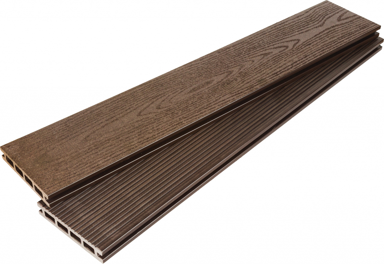 Террасная доска из ДПК ArtDeco в темно-коричневом цвете обладает шлифовкой и тиснением, что придает ей уникальный вид. Материал состоит из древесной муки и полимеров, обеспечивая высокую прочность и износостойкость. Доска не трескается, не гниет, не выцветает и легка в уходе. Монтаж происходит легко, как конструктор.Характеристики