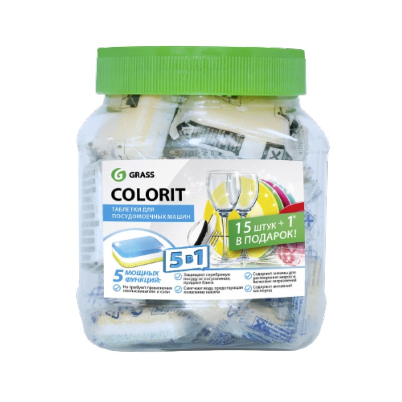 Таблетки для мытья посуды в посудомоечных машинах. Средство защищает серебряную посуду от потускнения, придает эффект блеска стеклянной и стальной посуде, смягчает воду, предотвращая появление накипи, содержит активный кислород. Таблетки содержат энзимы для растворения жиров, крахмалов и белковых загрязнений. Не требуют применения ополаскивателя и соли. Состав: ≥30% фосфаты; ≥5, но <15% кислородосодержащий отбеливатель; <5%: неионогенные ПАВ, поликарбоксилаты, фосфонаты, энзимы (протеаза, амилаза), отдушка. Способ применения: 1. Снять защитную пленку и положить таблетку в отсек для моющего средства (кроме отсека для серебра). 2. Закрыть отсек и пользоваться машиной как обычно. Таблетки не рекомендуется использовать при коротких циклах мойки. Одна таблетка рассчитана на одну мойку. Меры предосторожности: Беречь от детей. В случае контакта с глазами немедленно промыть большим количеством воды. При попадании внутрь немедленно обратиться за медицинской помощью и показать этикетку. СодержХарактеристики
