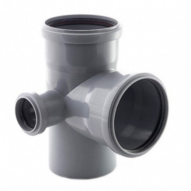 Крестовина применяется для стока вод внутри зданий, а также для отвода агрессивных вод. Способ соединения раструбный, с лепестковым кольцом.Характеристики