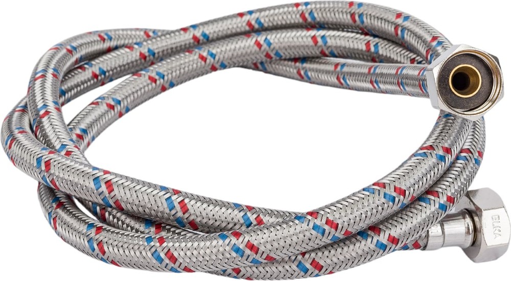 Подводка гибкая для воды ELKA с оплеткой из нержавеющей стали 1/2" х 150 см обеспечивает присоединение смывных бачков, смесителей, водонагревателей, стиральных и посудомоечных машин к трубопроводам холодного и горячего водоснабжения.Характеристики