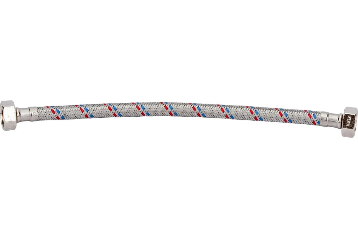 Подводка гибкая для воды с оплеткой из нержавеющей стали ELKA 1/2" х 30 см обеспечивает присоединение смывных бачков, смесителей, водонагревателей, стиральных и посудомоечных машин к трубопроводам холодного и горячего водоснабжения.Характеристики
