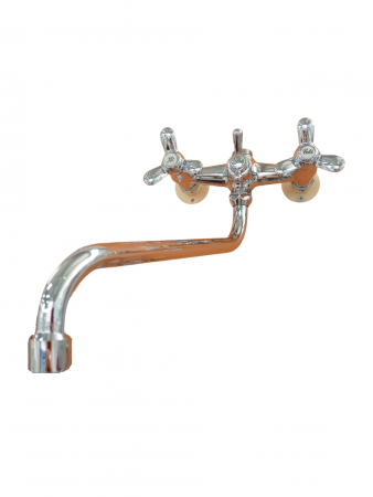 Смеситель для ванной двуручковый DIST X332S. с длинным изливом ( хром, силумин,на эксцентрик)