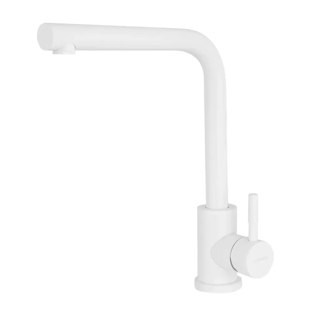 - Смеситель для кухни Lemen LA9002W, однорычажный, D35, нержавеющая сталь, гайка, белый