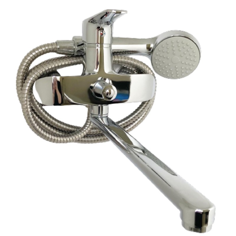 Управление смесителя однорычажное, что делает удобным его использование. В качестве запорного механизма используется керамический картридж диаметром 40 мм. В комплект входят: смеситель, ручная лейка, держатель лейки, душевой шланг, монтажный комплект.Характеристики