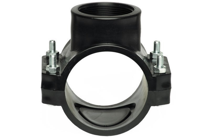 Состоит из двух половин, одна из которых имеет резьбовой отвод для последующей установки переходной детали для врезки. Монтаж седелки на трубу ПНД производится с помощью крепежных болтов, а герметичность соединения обеспечивается за счет резинового уплотнительного кольца. Используется при строительстве канализационных сетей, для монтажа магистралей, транспортирующих воду, газ, и любых химически нейтральных по отношению к полиэтилену жидкостей.Характеристики