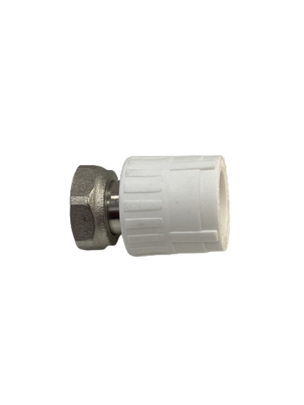 Муфта с накидной гайкой - прямой комбинированный полипропиленовый фитинг предназначен для соединения полипропиленовой трубы и компонента инженерной системы с резьбовым подключением. Монтаж осуществляется с помощью накидной гайки.Характеристики