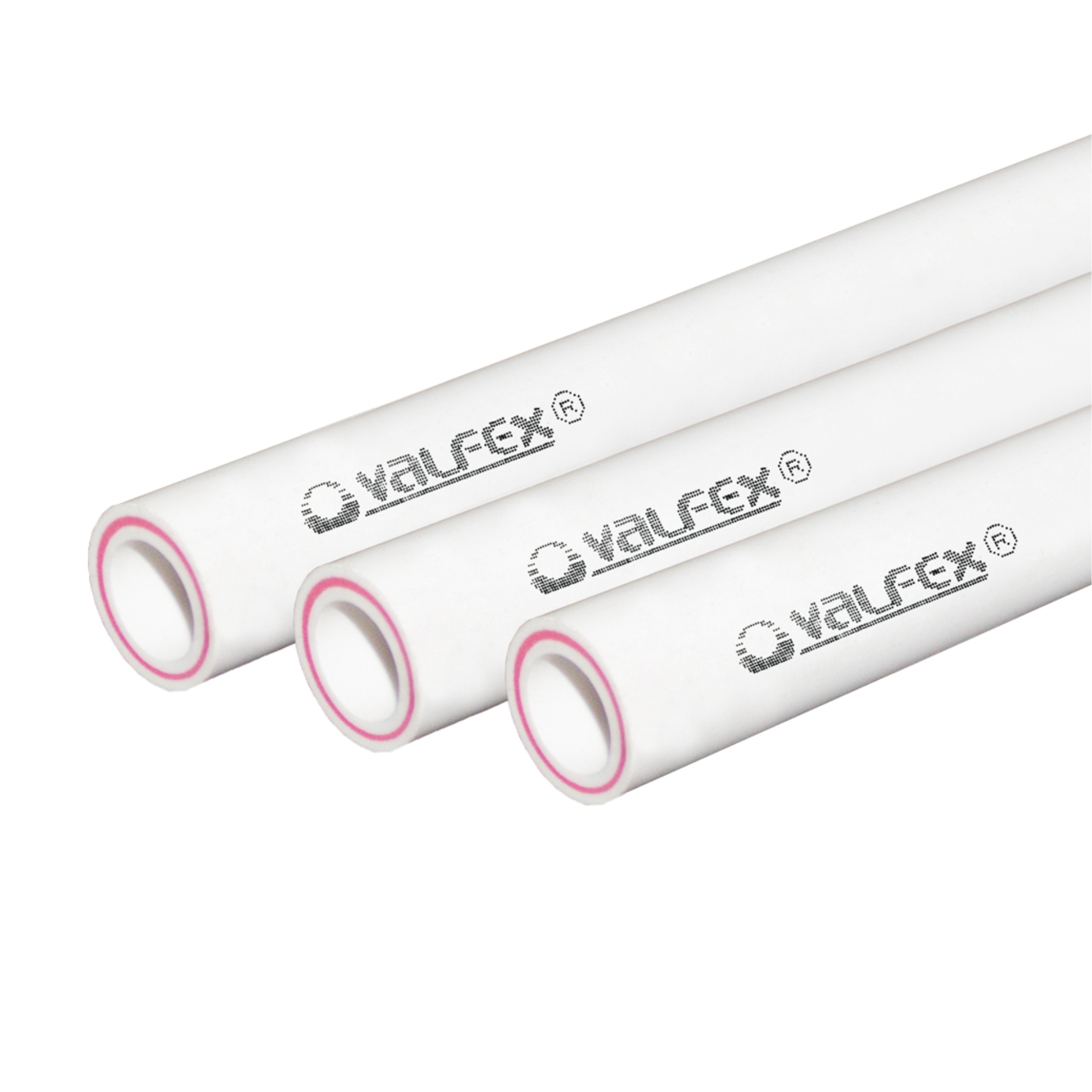 Трубы кольцевого сечения из статистического сополимера полипропилена PP-R трехслойные стеклонаполненные (средний слой армирован стекловолокном) (PP-R/PP-R GF/ PP-R) ТМ VALFEX® предназначены для транспортирования воды с температурой до 70°С для хозяйственно-питьевого водоснабжения, низкотемпературного отопления, высокотемпературного отопления отопительными приборами с температурой 90°С, а также для транспортирования других жидких сред, к которым материал труб химически стоек.Характеристики
