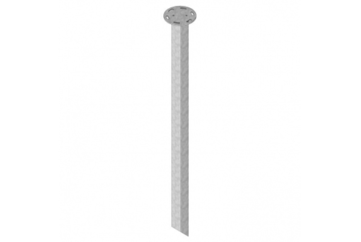 Забивные сваи - оцинкованные металлические изделия, состоящие из стальной трубы с фланцем, с одной стороны трубы имеют заостренный конец. Монтаж Погружение свай в землю осуществляется ударным способом. Для монтажа свай подходит любая техника или инструмент, способный создавать достаточное усилие для заглубления сваи. Последующий монтаж столбов на забивную сваю происходит так же, как и на винтовые сваи с фланцем, - столбы должны иметь треугольные фланцы. Фланцы скрепляются между собой болтами и гайками М13.Характеристики