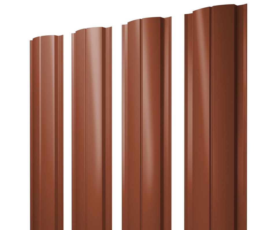 - Штакетник Полукруглый Slim с прямым резом PE 0,45 RAL 8004 Терракота