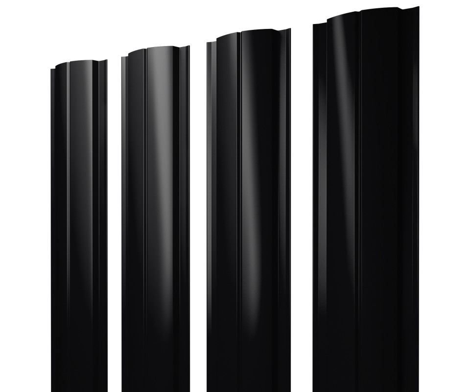 - Штакетник Полукруглый Slim с прямым резом 0,4 PE-Matt-Double RAL 9005 Черный