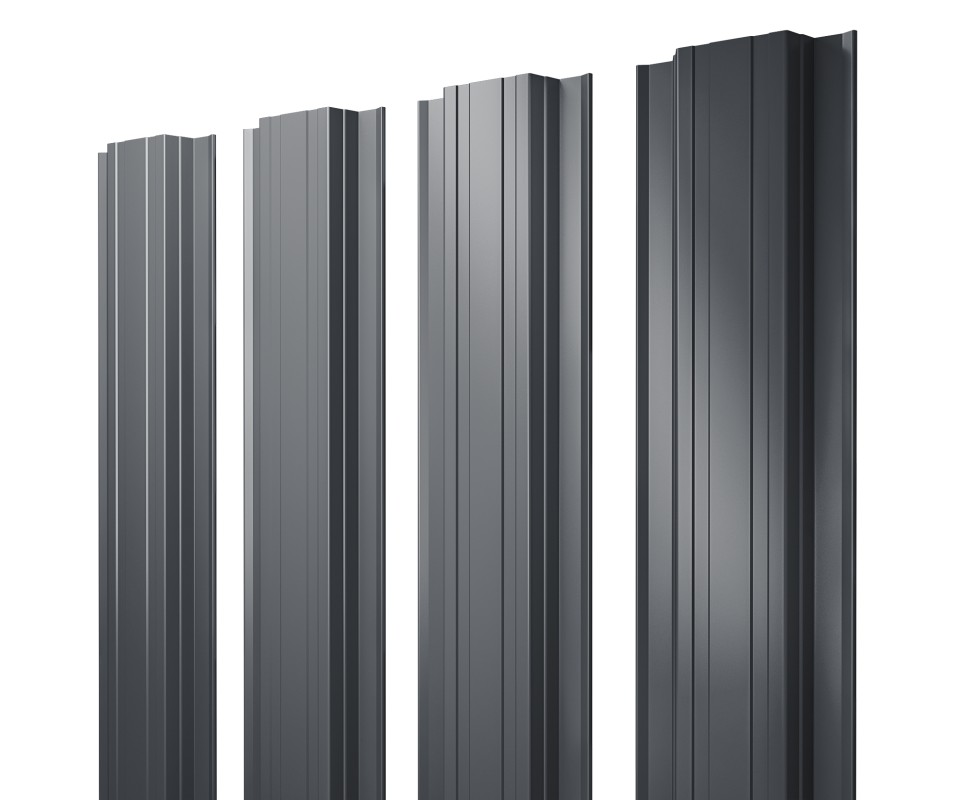 - Штакетник Прямоугольный с прямым резом 0,45 PE RAL 7024 мокрый асфальт