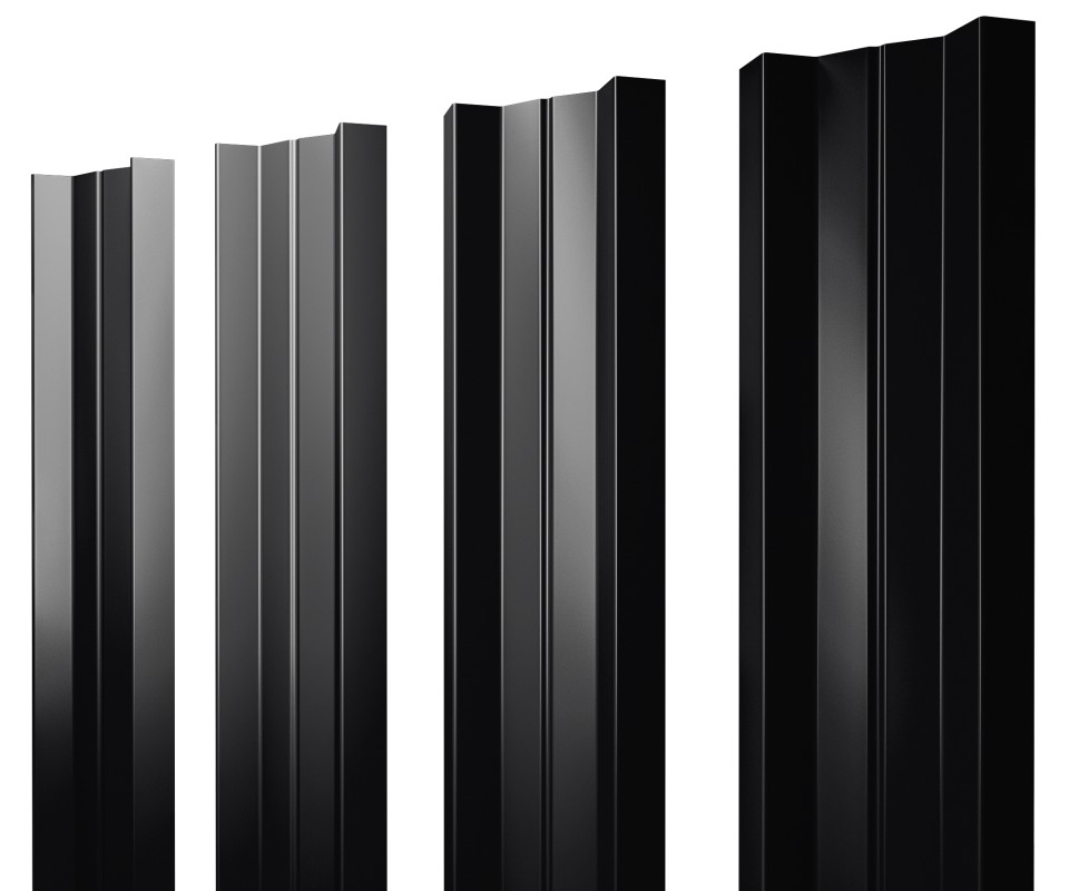 - Штакетник М-образный А с прямым резом 0,45 Drap-double TX RAL 9005 черный
