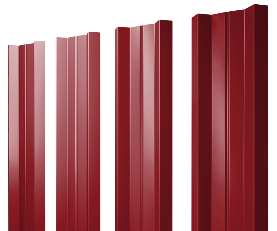 - Штакетник М-образный А с прямым резом 0,45 PE RAL 3003 рубиново-красный